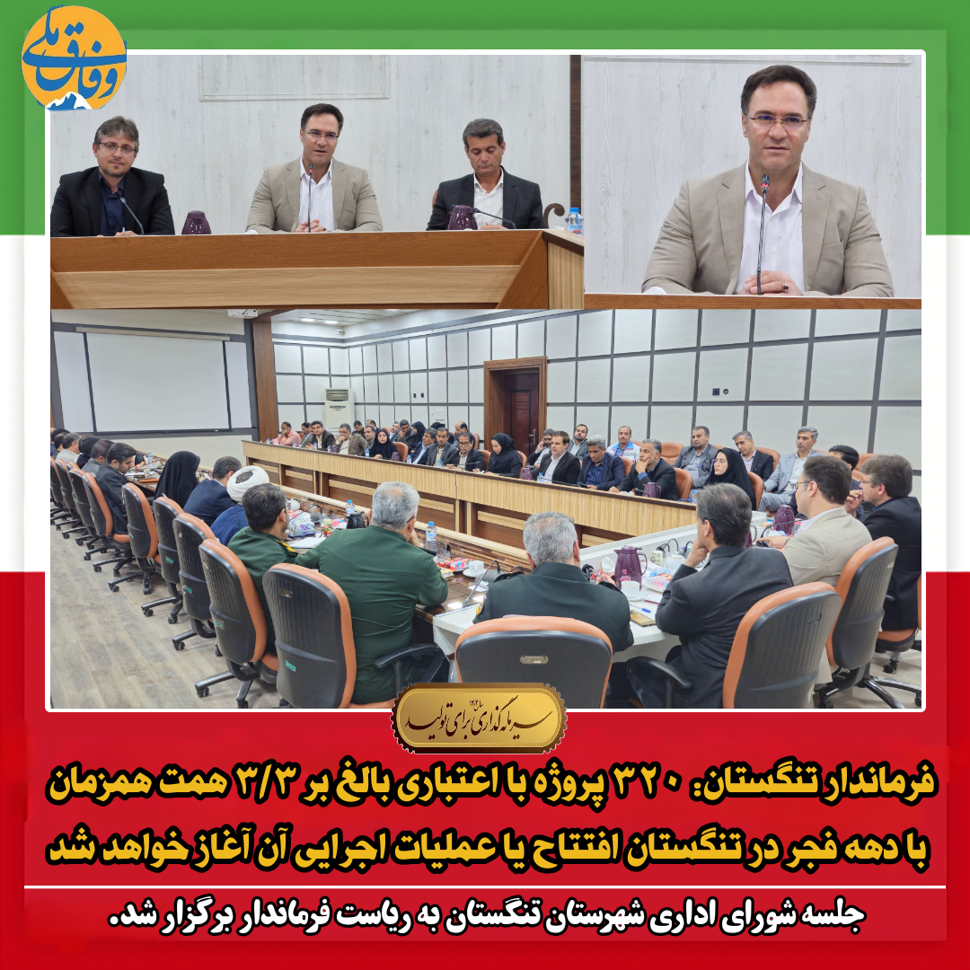 ����فرماندار تنگستان: ۳۲۰ پروژه با اعتباری بالغ بر ۳/۳ همت همزمان با دهه فجر در تنگستان افتتاح یا عملیات اجرایی آن آغاز خواهد شد