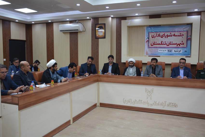 جلسه شورای اداری تنگستان به ریاست فرماندارشهرستان و با حضور امام جمعه اهرم ، معاونین فرمانداری شهرستان ،بخشداران مرکزی و دلوار ، مدیرکل ثبت اسناد و املاک استان بوشهر ، فرماندهان سپاه ناحیه امام علی (ع) تنگستان ، سپاه امام حسین (ع) دلوار ، اعضای شورای تامین و اعضای شورای اداری شهرستان در محل سالن جلسات دانشگاه ازاد اسلامی واحد تنگستان (اهرم) برگزار شد