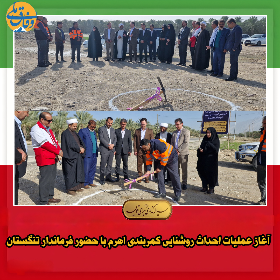 آغاز عملیات احداث روشنایی کمربندی اهرم با حضور فرماندار تنگستان