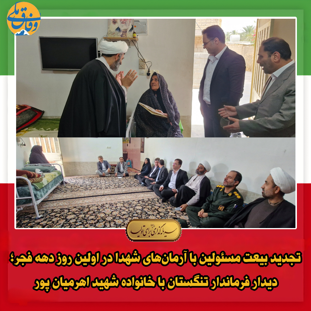 تجدید بیعت مسئولین با آرمان‌های شهدا در اولین روز دهه فجر؛ دیدار فرماندار تنگستان با خانواده شهید اهرمیان پور